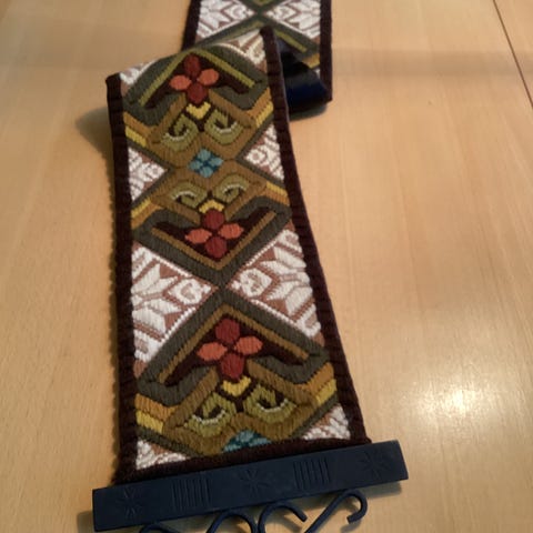 Løper/Klokkestrenger brodert med klostersøm. Med tradisjonelt norsk mønster. Uten smijernsbeslag men jeg har noen ekstra du kan se på hvis du er interessert.