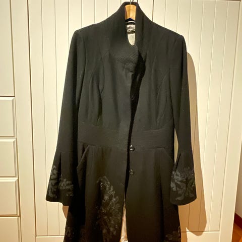 Bik Bok Kåpe i størrelse S, laget av ull. Kåpen er grå og designet for kvinner.