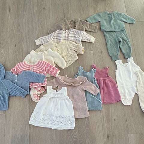 Masse veldig pent brukt strikketøy/hentesett i str 0-3 måneder. Kan selges per sett eller som pakke 📦