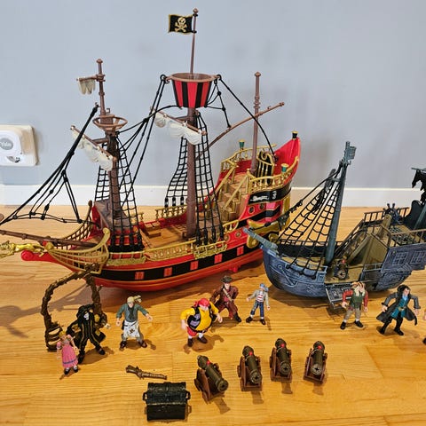 Godt brukt og noen småting på skipet kan være defekt, men fortsatt masse glede igjen for små pirater. Selges helst samlet.