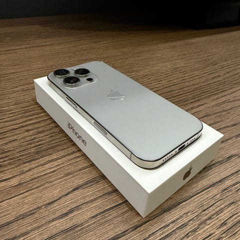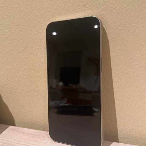 Den har 128 GB lagring og er i fargen Naturlig Titan.