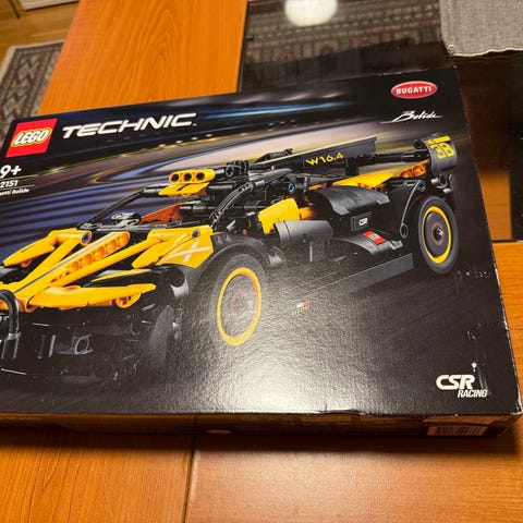 LEGO Technic "Bugatti Bolide" 42111. Esken og første pose er åpnet og bygging påbegynt, men aldri fullført. Kan sendes eller hentes i Asker.