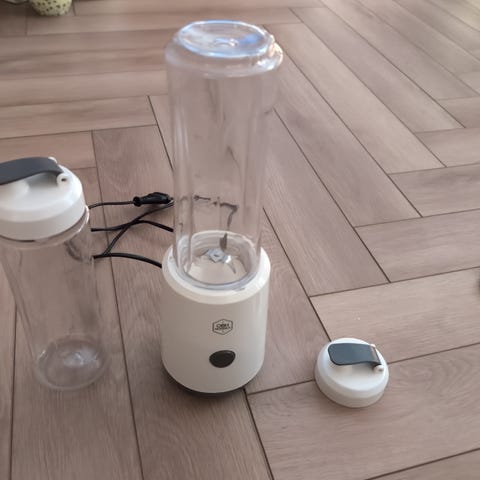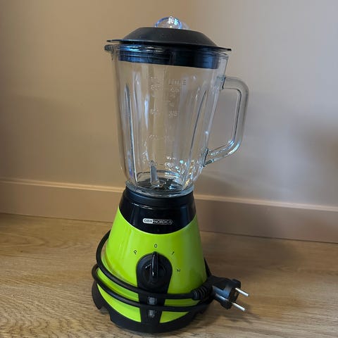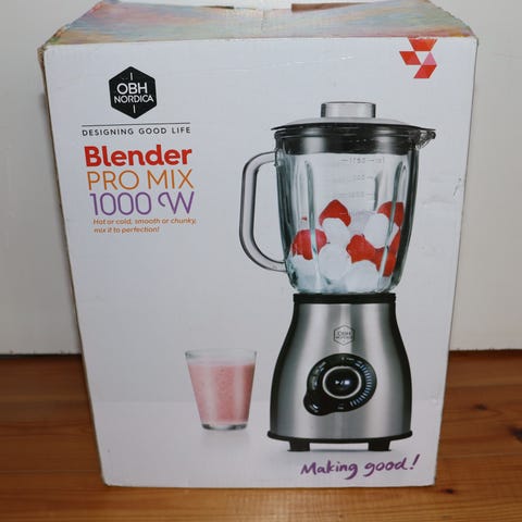 OBH Nordica blender. Et par år gammel. Godt brukt, men fungerer fortsatt veldig bra. Den kan lage smoothie, og andre ting man trenger blender til. Den har auto clean funksjon. Det følger med en plastskrape, den har noen skader på seg.
