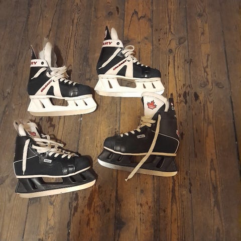 Skøyter med løs innesko til salgs, passer en lang fot. Står ikke eksakt strl, men de er rundt 49-50. Passer nok best til å surre litt rundt på skøytebanen med (ikke skikkelig hockey).