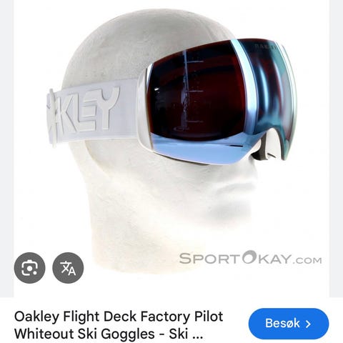 Oakley Flight Deck M. Sort strikk. Det følger med 2 stk linser. En for sol og fint vær og en for flatt lys. Veldig enkelt å skifte glass.