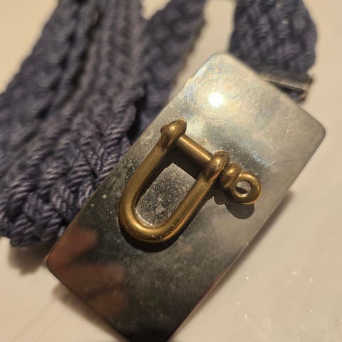 Selger et stilig belte med den klassiske Ford-logoen i blå emalje/krom-utførelse.