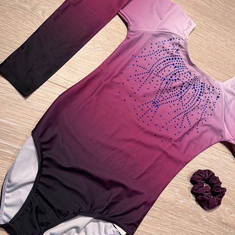 Milano turndrakt for barn i størrelse 140. (9-10år). Drakten har et flerfarget mønster og er laget for turn eller dans.