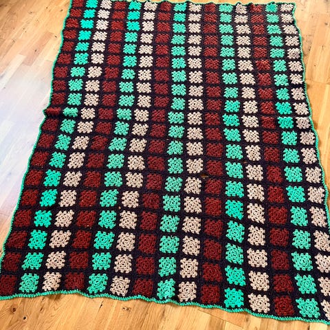 Antas å være fra 40-50 tallet. Det er i senere tid heklet på en rad på den ene langsiden, denne kan nok enkelt fjernes.