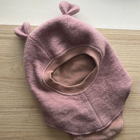 Pent brukt balaclava i fleece fra Huttelihut i gammelrosa.
