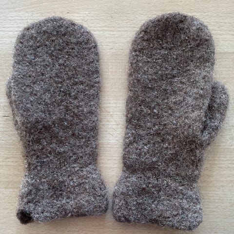 Brannvotter i str. 6 / 8 år. Strikket med garnet SISU fra Sandnes. Kjøper bet event porto