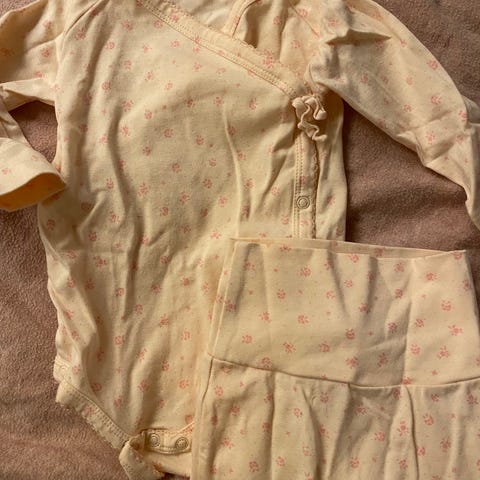 Pent brukt heldrakt, omslags body og bukse med bein. Buksen har et lite begynnende hull mellom beina. Se bilde. Litt nupper på plaggene.