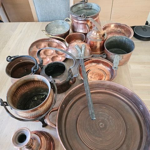 Kaketine, kost og brett, 2 kakeformer, liten butt, hulle med salt og pepperbøsse, smørkopp, velokommenskult mm passer fint på hytte. Selges samlet. Hentes på Løten.