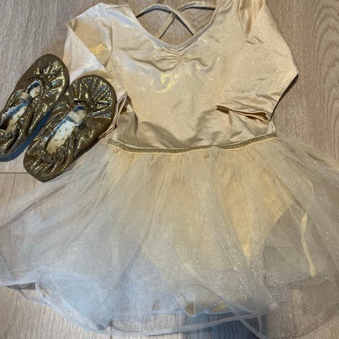 H&M kjole for jente i størrelse 98/104, lys rosa farge. Kjolen har lange ermer og en skjørt med tylldetaljer