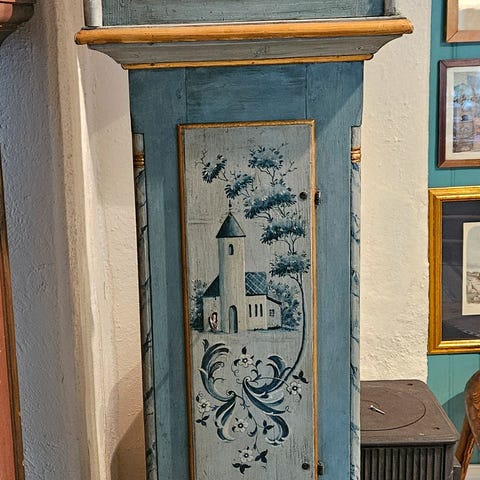 Antikk kiste med dekorative malte detaljer
