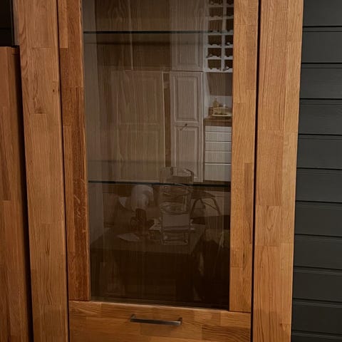 Selger vårt fine vitrineskap fra Jysk som ble kjøpt for ca 4 mnd siden, selges da vi har behov for noe større.