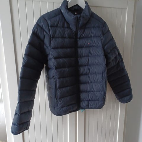 Tommy Hilfiger dunjakke for gutt i størrelse 164. Jakken er blå og laget av dunmateriale, som gir god isolasjon og varme. Passer til barn og ungdom. Kjøpt november, nesten ikke brukt.