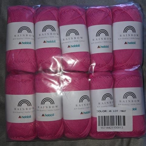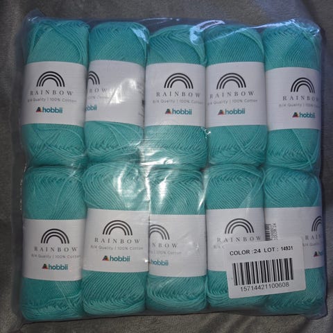10 nøster med Rainbow Cotton / Bomull 8/8 garn fra Hobbii selges samlet for kr. 100,-