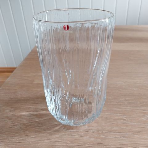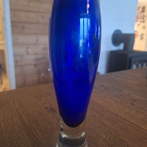 Iittala Aalto vase i blått glass. Vasen har en karakteristisk form og er laget av klart blått glass. Egnet som dekorativ gjenstand eller til blomsterarrangementer.