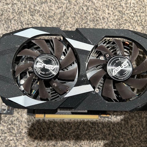 ASUS Dual GeForce GTX 1060 skjermkort med 3GB minne selges. Kun brukt til kontorbruk. Viftene stopper automatisk når kortet ikke belastes, perfekt for oss som liker stille PC-er.