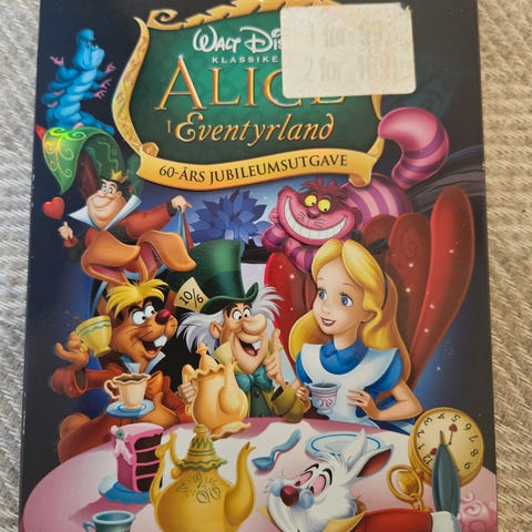 Uåpnet i plast Walt Disney Alice in Wonderland DVD i 60-års jubileumsutgave. Inneholder originalfilmen og bonusmateriell som "I'm not" sang og musikkvideo, samt "Alice's Adventures" og "Tale and Poem". DVD-format.