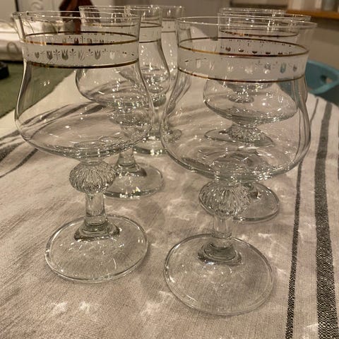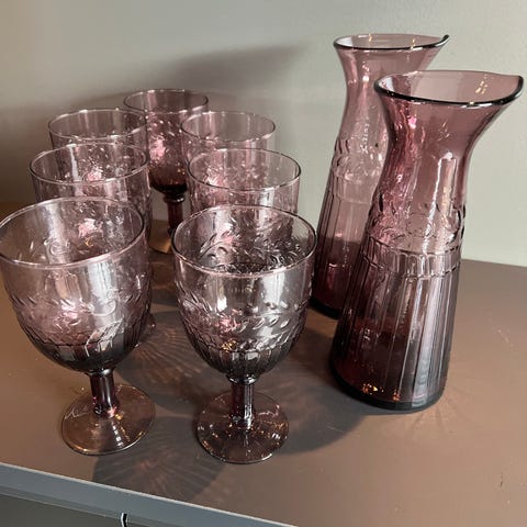 Glass fra 80 / 90 tallet selges . 7 stk veldig pene stette glass selges. Glassene er robuste og uten bruksslitasje . H : 16 cm.