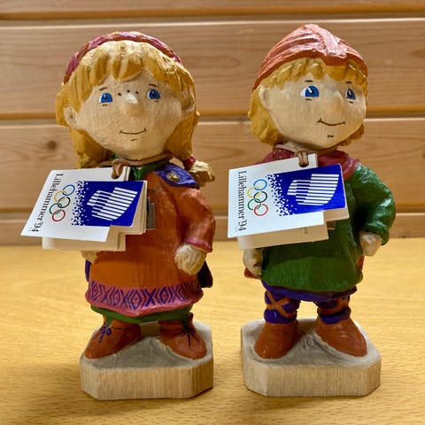 OL-maskotene fra Lillehammer 94 - Kristin og Håkon selges samlet. Har stått til pynt i ei hylle. Kan sendes eller hentes på Borgheim (Nøtterø)