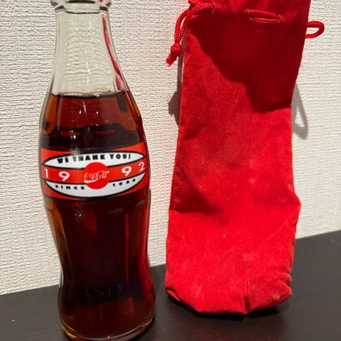 Coca-Cola 100 års jubileumsflaske i glass. Flasken har et spesialdesign med et bilde av en mann og årstallet 1886, som markerer selskapets grunnleggelsesår. Flasken inneholder vanlig Coca-Cola og er en samlerobjektflaske.