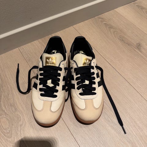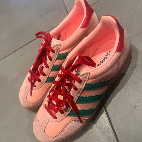 Svært pent brukte Adidas Gazelle sneakers i strl. 39 1/3 selges, da de ble litt for små for meg. Kun brukt innendørs som innesko, 2 eller 3 ganger.