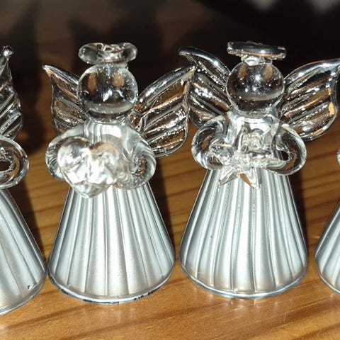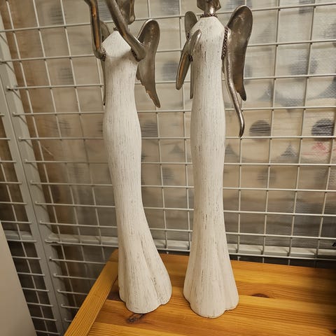 2 nydelige høye engler som er pent brukt. Kun hatt fremme i julehøytiden. Selges samlet.