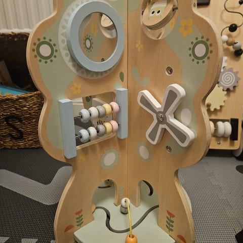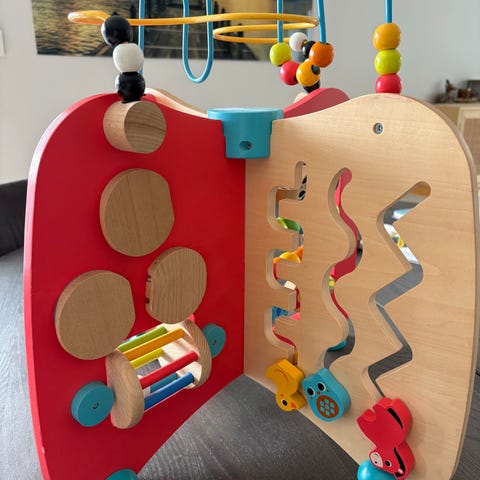 Med dette lekeapparatet kan barna kjøre både bil og fly, flytter rundt på figurer og kuler.