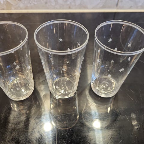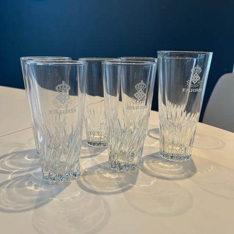 Ett hakk i ett glass. Logo fortsatt godt synlig. Selges samlet for 100kr. Må hentes i Oslo!