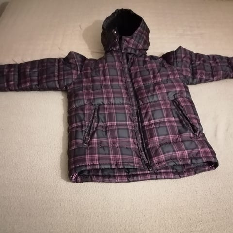En blå Skogstad jakke str 10, gis gratis, pga en liten skade som er limt på armen. Se bilder, fint å bruke som reserve jakke.