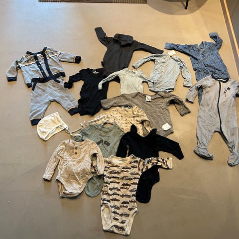 Ullklær brukt til 1 -2 barn. Noe er synlig brukt, men alt har mye bruk igjen, noe er lite brukt.