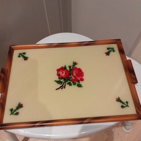 Dette er et håndmalt glassfat fra Steninge Slott.