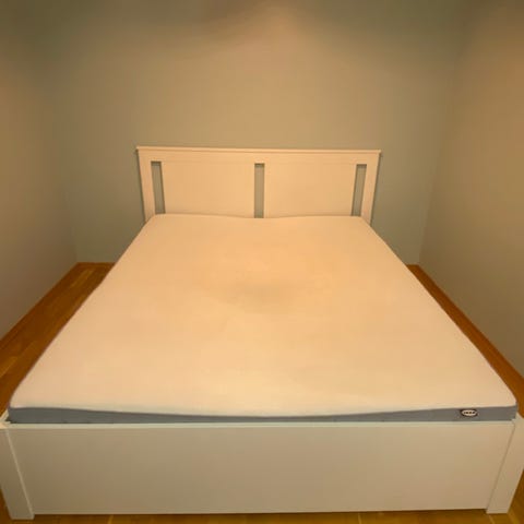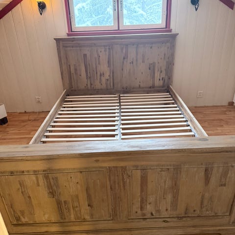 Selger pent brukt IKEA SAGSTUEN seng, 160x200, inkludert Valevåg madrass. Kjøpt sommeren 2024 og brukt et års tid. Noen merker på ene langside etter sengehest (se bilde), men disse kan lett males eller tusjes vekk.