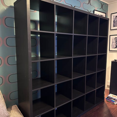 Selger en hvit KALLAX-hylle som kan brukes både stående og liggende. Praktisk og solid hylle som passer godt til oppbevaring i stue, barnerom; kontor eller bod.
