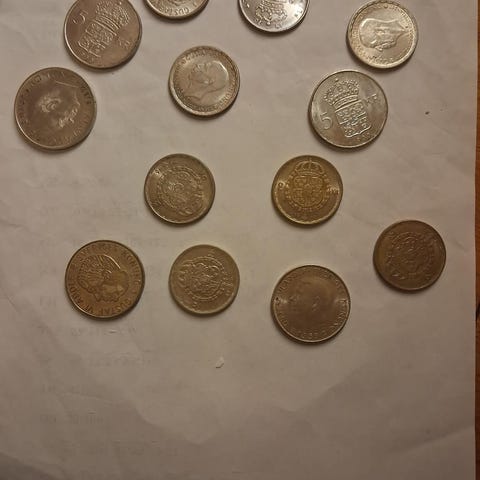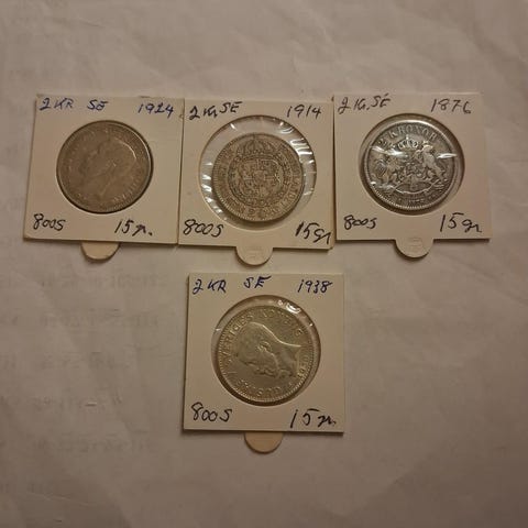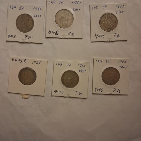 11 stk Svenske 1 og 2 kr Sølv