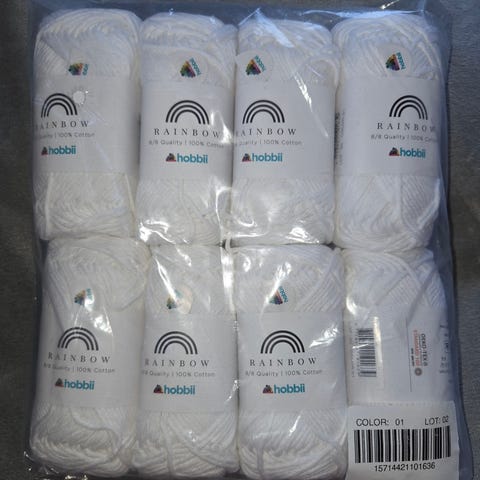 10 nøster med Rainbow Cotton / Bomull 8/8 garn fra Hobbii selges samlet for kr. 100,-