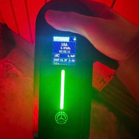 Ordinær nødlader som passer de fleste av dagens elbiler. Tilsvarende lader koster ca 6000 på elkjøp. Aldri brukt den, kun vært reserve. Testet og fungerer som den skal.
