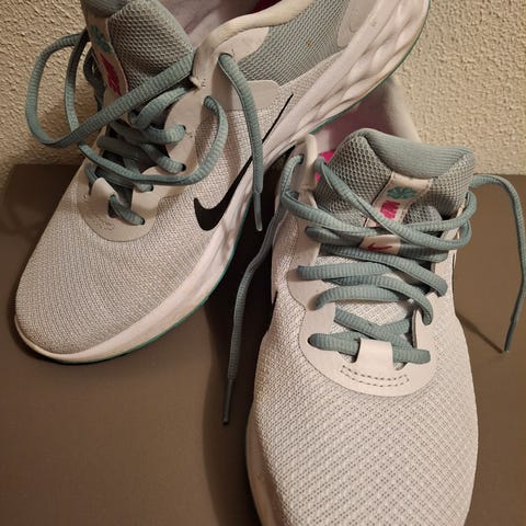 Nike sneakers joggesko i størrelse 39 med rosa detaljer. Skoene har snøring og er laget for generell bruk.