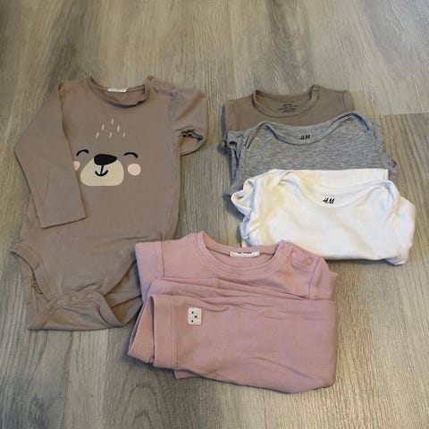 Pent brukte klær i varierende størrelser, fra 80 til 98 (12 plagg)