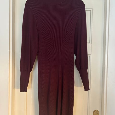 Kjole fra Aware i størrelse M, farge rød. Kjolen har lange ermer med mansjett og et omslagsdesign.