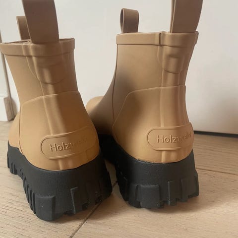 Viking X Holzweiler regnstøvler i størrelse 38, gul farge. Støvlene er laget for å beskytte føttene mot vann og fuktighet, egnet for bruk i våte forhold.