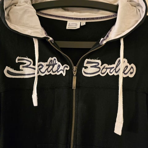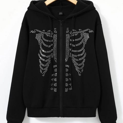 Selger en zip hoodie fra Jawbreaker med heltrykk av skjelett og rosa roser/hjerte. Genseren har glidelås foran og hette med skjelettdesign som fortsetter over hodet