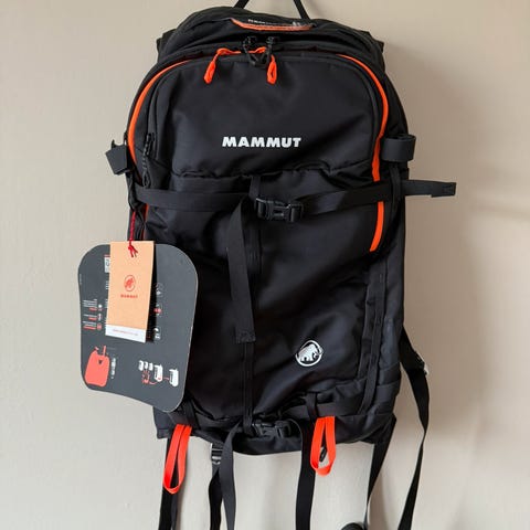 God plass til det man trenger for å ferdes trygt i fjellet. Airbag som kan løses ut ved behov.