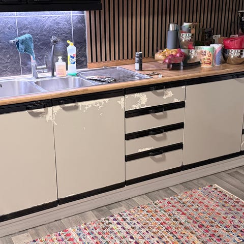 Hvit kjøkkeninnredning med integrert stekeovn og vask