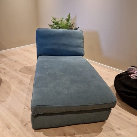 Kivik sjeselong i stoff Tallmyra hvit/svart/grå til salgs. Må hentes. Skruer og oppheng til å kobles til sofa medfølger.