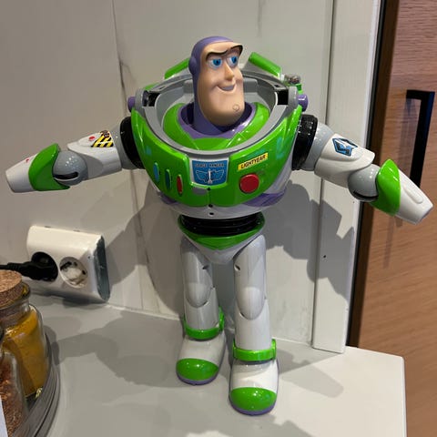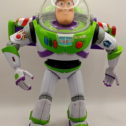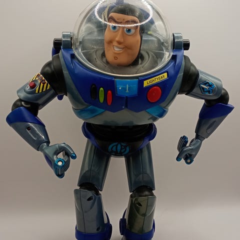 Buzz lightyear figuren har beveglige armer og ben.