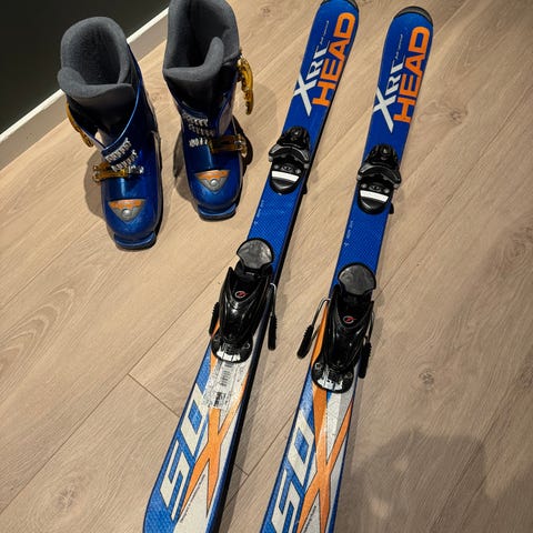 Pent brukt slalåmskipakke frå Head med ski og sko.