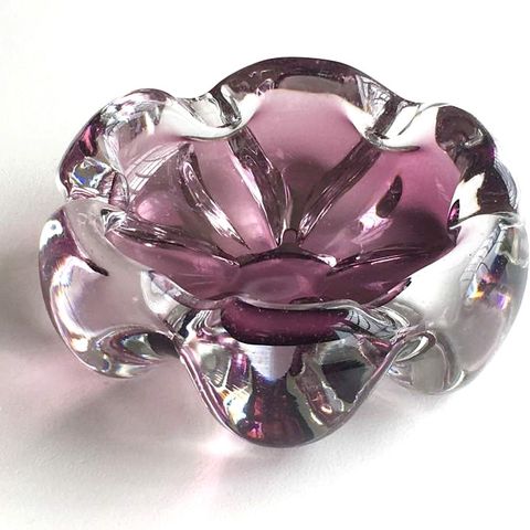 stk tunge vintage glasskåler i farget pressglass – issprengt/bark-mønster